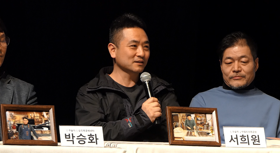 \r\n아셀트리목공방 서희원 장인이 소감을 말하고 있는 모습니다.