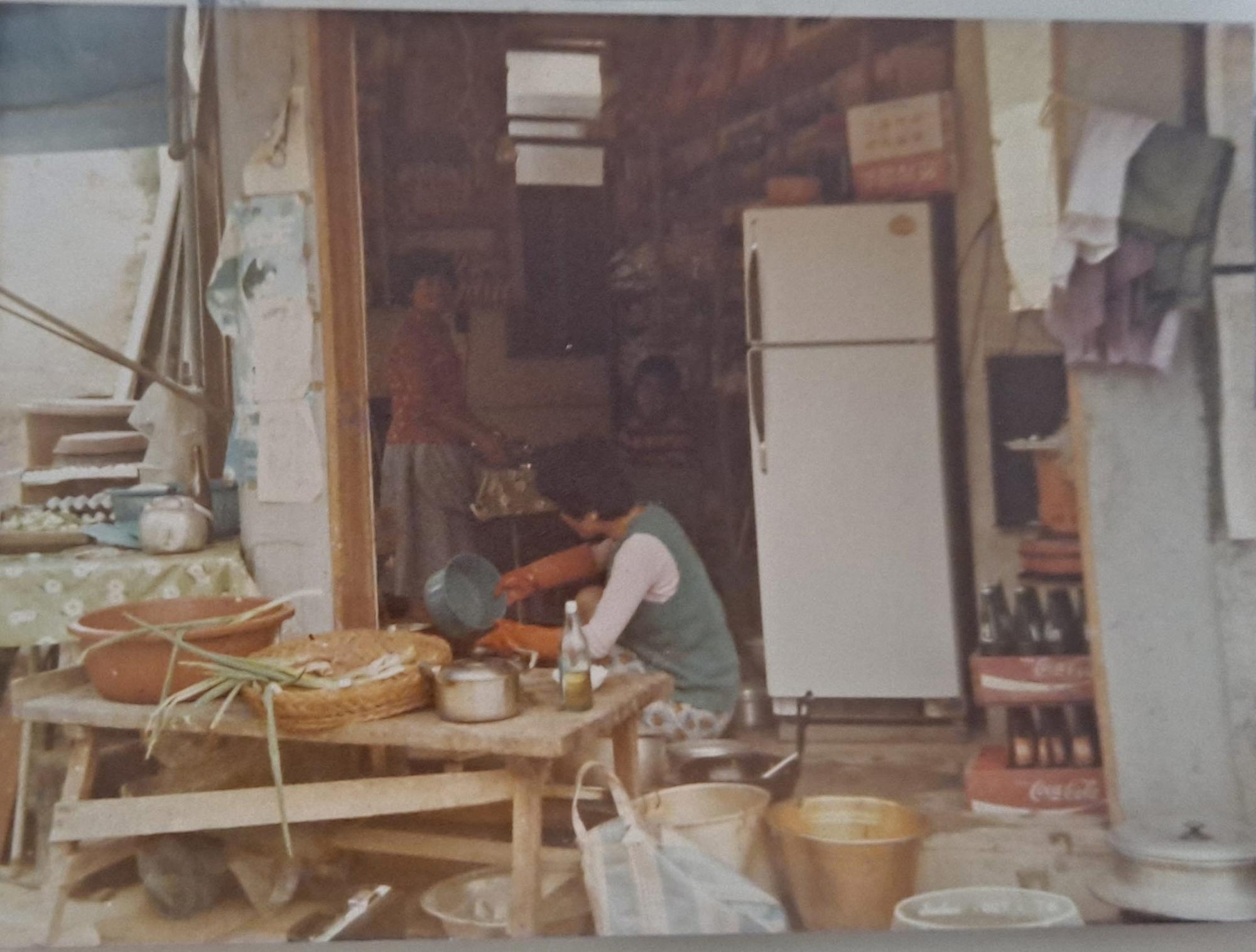 새로 지은 집 한쪽 담을 허물고 아버지가 직접 지은 가게터에 슈퍼를 하셨다. 엄마의 음식 솜씨에 뒷산 발파작업을 하시는 분들이 밥을 해달라는 간청에 점심시간에는 한밭집으로 변하는 가게였다. 가까이 살던 작은오빠 시형 엄마가 커피를 핑계로 매일 오셔서 도와주시곤했다. 사촌동생이 빼꼼 보인다.