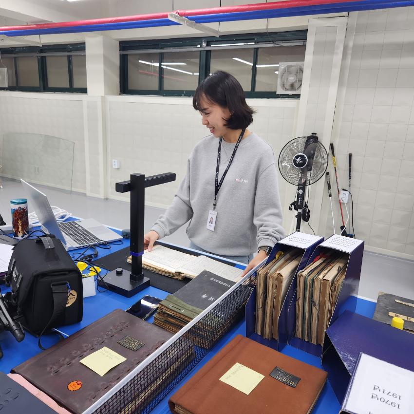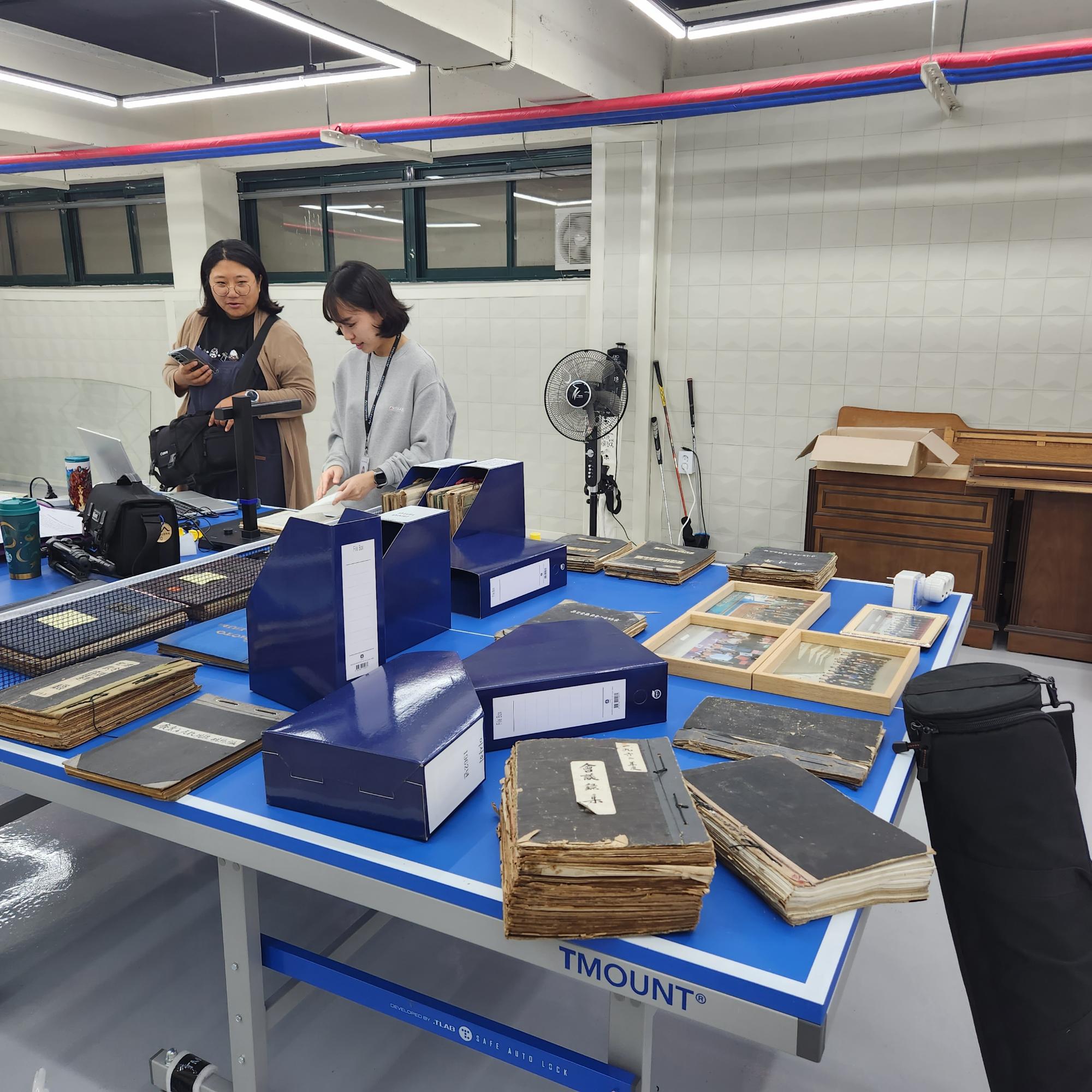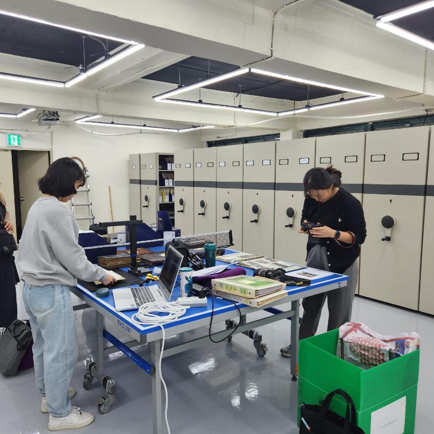 \r\n학산문화원 양지원 팀장과 최지은 사원이 보관 문서의 디지털화를 작업 중이다. (디지털카메라와 스캐너를 사용)