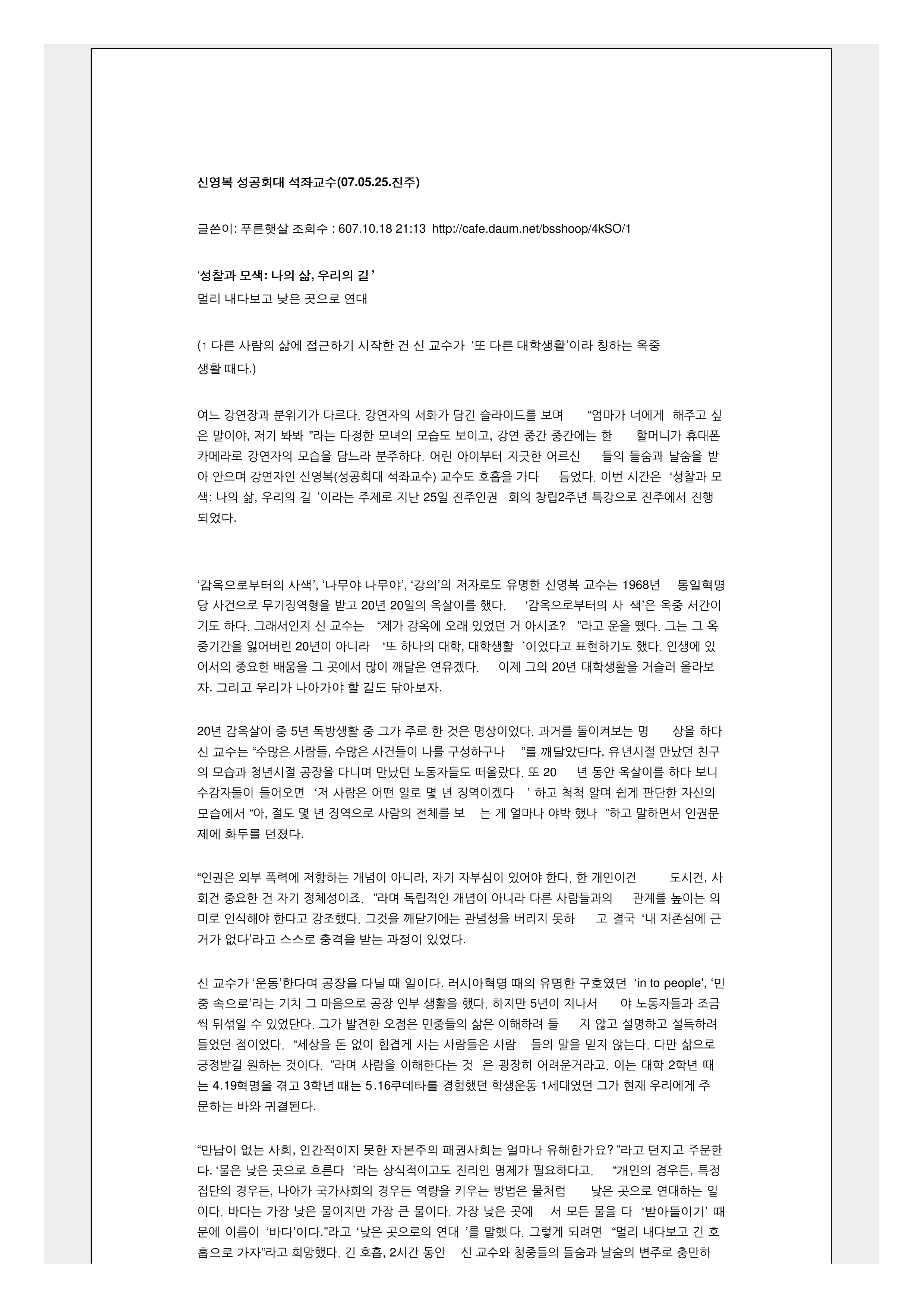 [강연] 신영복교수 올해는 한국사회 내부 성찰하는 해”"