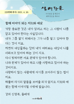 [소식지] 더불어숲 샘터찬물편지 229화