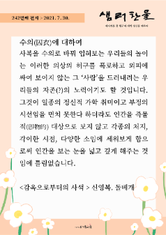 [소식지] 더불어숲 샘터찬물편지 231화