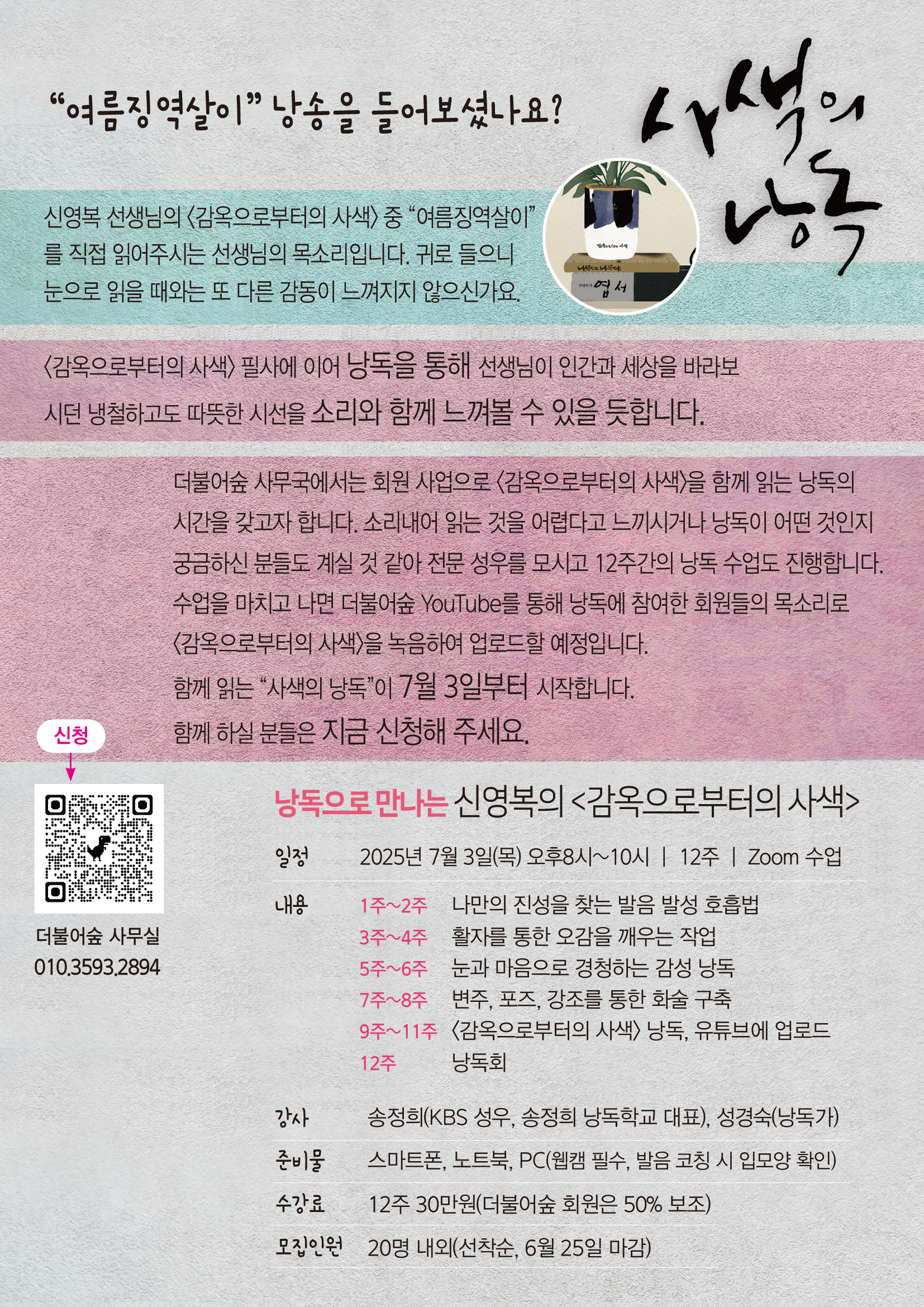 함께 읽는 "사색의 낭독"이 7월 3일부터 시작합니다.