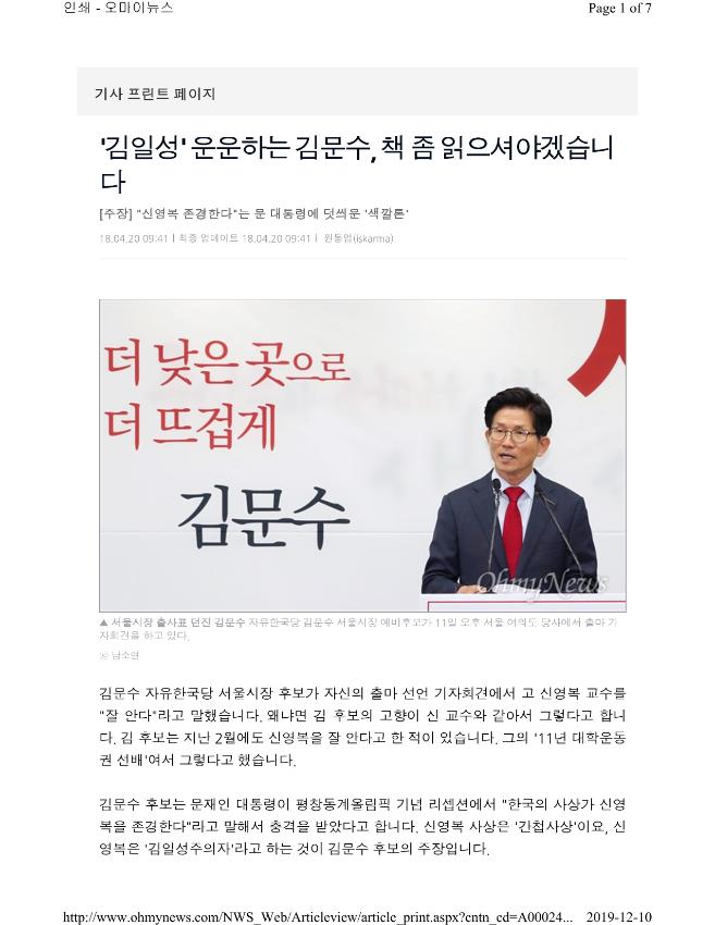 서울시장 출사표 던진 김문수 자유한국당 김문수 서울시장 예비후보가 11일 오후 서울 여의도 당사에서 출마 기자회견을 하고 있다. ▲ 서울시장 출사표 던진 김문수 자유한국당 김문수 서울시장 예비후보가 11일 오후 서울 여의도 당사에서 출마 기자회견을 하고 있다. 김문수 자유한국당 서울시장 후보가 자신의 출마 선언 기자회견에서 고 신영복 교수를 "잘 안다"라고 말했습니다. 왜냐면 김 후보의 고향이 신 교수와 같아서 그렇다고 합니다. 김 후보는 지난 2월에도 신영복을 잘 안다고 한 적이 있습니다. 그의 '11년 대학운동권 선배'여서 그렇다고 했습니다. 김문수 후보는 문재인 대통령이 평창동계올림픽 기념 리셉션에서 "한국의 사상가 신영복을 존경한다"라고 말해서 충격을 받았다고 합니다. 신영복 사상은 '간첩사상'이요, 신영복은 '김일성주의자'라고 하는 것이 김문수 후보의 주장입니다. "신영복은 김일성주의자"... 김문수의 단언 저는 '고향이 같은 사람이라야, 대학이 같은 곳이라야' 사람을 알 수 있다고 생각하지 않습니다. 핏줄도, 학교도 혹은 정당도 누군가를 아는 것과는 아무런 상관이 없습니다. 사람을 아는 데는, 그 대상이 쓴 책을 꼼꼼히 읽는 것 만한 방법이 없습니다. 신영복 선생이 어떤 생각을 했는지, 어떻게 살아왔는지, 우리는 소상히 알 수 있습니다. 문재인 대통령 역시 책으로 신영복을 읽고, 또 알았을 것입니다. 문재인 대통령의 신영복 사랑 혹은 존경은 새삼스럽지도 놀랍지도 않습니다. 제 주변의 장삼이사들에서도 신영복 선생을 '존경한다'는 이들은 넘칩니다. 저는 작은 독서모임을 2년째 진행하고 있는데, 그 낭독모임이 처음 고른 책은 <감옥으로부터의 사색>이었습니다. 오래전 한 번씩은 읽었던 이 책을, 대부분은 다시 읽는 데 주저함이 없었습니다. 2년가량 예닐곱 권의 엄선된 책들을 골라 읽어왔지만, 이 책만큼 진한 감동과 사상적 울림을 주는 것은 드물었습니다. 김문수 후보의 주장은 이런 것입니다. '내가 아는데, 그 사람 빨갱입니다. 그런 사람 존경한다고 하면, 빨갱이에요. 나라가 걱정입니다. 잠이 안 와요.' 일반의 시민으로서 우리들 독서모임 여남은 명도 신영복 선생님께 '사랑과 존경'을 느낍니다. 그의 논리대로면 우리 역시도 '빨갱이'가 되는 것입니다. 철없는 우중(愚衆)으로 값싸게 매도되는 거죠. 김문수 후보가 이런 주장을 펴는 '근거'는 법원의 판결문입니다. 20년 징역을 살았던 현실을 '증거'로 삼습니다. 우리 독서모임은 선생의 글과 책을 읽고, 그에 따른 생각을 따르죠. 김문수 후보는 우리를 가르치려 듭니다. 위에서 아래 사람에게 손가락질 하죠. <감옥으로부터의 사색>에는 높이 있는 이들이 아랫 사람에게 어떻게 배워야 하는지 나옵니다. "사다리를 올라가 높은 곳에서 일할 때의 어려움은 무엇보다도 글씨가 바른지 삐뚤어졌는지를 알 수 없다는 것입니다. 코끼리 앞에 선 장님의 막연함 같은 것입니다. 저는 낮은 곳에 있는 사람들에게 부지런히 물어봄으로써 겨우 바른 글씨를 쓸 수 있었습니다." - <감옥으로부터의 사색> 중 1980. 10. 20. 청구회 국민학생들의 '주먹 쥐고'를 폭력혁명 몰아 신영복 선생은 통일혁명당 사건으로 1968년 7월 구속됩니다. 김문수 후보도 상세히 이야기한 바 있죠. "김종태, 김질락, 이문규 등이 북의 지령과 자금을 받고 만든 이 혁명당이 무장봉기, 시설파괴, 요인암살 등의 방법으로 정부 전복과 공산정권 수립을 꾀했"고, 신영복 선생 역시 이 당의 핵심 인물이었다는 것이었습니다. 당시 스물 일곱의 나이로 육군사관학교에서 경제학을 가르치던 '군인' 신영복은 육군보통군법회의에서 사형을 선고받죠. 그를 수사하던 중앙정보부는 어떤 내용으로 그를 심문하였을까요? "청구회의 정체와 회원의 명단을 대라는 추상같은 호령 앞에서 나는 말없이 눈을 감고 있었다. 어떠한 과정으로 누구의 입을 통하여 여기 이처럼 준열하게 그것이 추궁되고 있는가. 나는 이런 것들을 아랑곳하지 않았다. 나는 뜨거운 폭양 속에서 아우성치는 매미들의 울음소리만 듣고 있었다. 나는 내 어릴 적 기억 속의 아득한 그리움처럼 손때 묻은 팽이 한 개를 회상하고 있었다. 그리고 조용히 답변해 주었다. '초등학교 7학년, 8학년 학생'이라는 사실을. 그후 나는 서울지방법원 8호 검사실에서 또 한번 곤혹을 느끼지 않을 수 없었다. "이것이 '청구회 노래'인가?" - <감옥으로부터의 사색> 중 청구회의 추억 "국가변란을 노리는 폭력과 파괴 집단으로 "중정과 검찰이 집요하게 물고 늘어지는 저 '청구회'는 도대체 무엇일까요? 그건 신영복의 '어린 친구'들과 신영복의 작은 모임이었습니다. 학생들이 다니던 학교 이름이 청구국민학교였습니다. 1966년 서오릉의 소풍길로부터, 그가 구속된 1968년 여름까지 2년여의 기간 동안 이들의 '친구'였습니다. 그들 7명 청구회원들은 매달 한 번 장충단 공원에서 거르지 않고 만났습니다. 가장 힘을 기울여 독서를 하고, 이야기를 나눴습니다. 독서 이외에 청구회 회원들이 스스로 행한 일은 다음과 같았습니다. "이를테면 우선 동네의 골목을 청소하는 일을 들 수 있다. … 그러나 여름철과 겨울 방학 때는 매