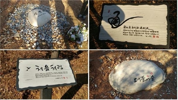 구로구는 1주기를 맞아 신영복의 정신을 기리고, 주민들에게 사색의 공간을 제공하기 위해 그의 대표적 저서인 <더불어 숲>에서 착안한 '더불어 숲길'을 조성했다. '더불어 숲길'은 그가 재직했던 성공회대 뒷산인 항동 산 23-1번지 일대에 길이 480m, 폭 2m로 조성된 산책로다. 생전에 직접 쓴 서화작품 31점이 안내판 형식으로 설치되어 있고 항동 철도길과 수목원, 구로 올레길 3코스와도 연결되어 있다. 한번쯤은 걸어봄직하다.