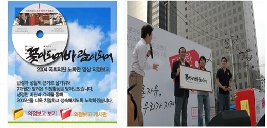 ▲ 왼쪽부터 17대 의원회관, 딴지일보 김어준 총수와의 인터뷰 (2007.4.20.), 19대 노회찬 국회의원 지역사무실(노원구 상계동) 개소식 (2012.8.21.)