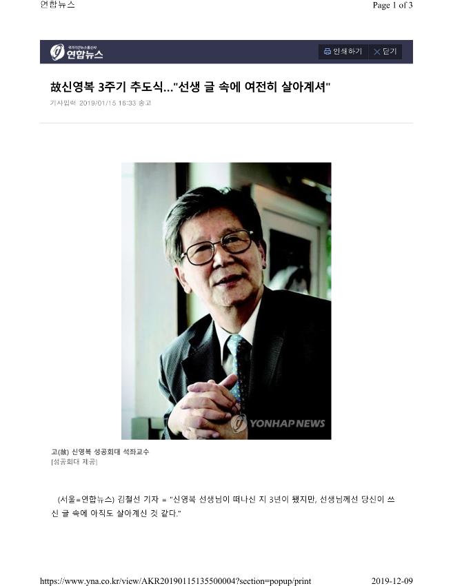 故신영복 3주기 추도식…"선생 글 속에 여전히 살아계셔" 송고시간 | 2019-01-15 16:33 고(故) 신영복 성공회대 석좌교수 [성공회대 제공] (서울=연합뉴스) 김철선 기자 = "신영복 선생님이 떠나신 지 3년이 됐지만, 선생님께선 당신이 쓰신 글 속에 아직도 살아계신 것 같다." 고(故) 신영복 성공회대 교수의 3주기인 15일 서울 구로구 항동 성공회대 성미가엘 성당에서 열린 추도식에서 사회 각계 인사들이 모여 고인을 추모했다. 200석 규모의 성당은 고인의 유족과 제자를 비롯해 신영복 선생을 추모하는 사람들로 가득 차 발 디딜 틈이 없었다. 미처 자리를 찾지 못한 일부 참석자들은 성당 밖으로 나가는 계단에 서서 한 시간 반 동안 추도식을 멀리서 지켜봤다. 추도식 1부에서는 성공회대 교목실장 김은규 신부가 별세기도를 집례했고, 2부에서는 신영복 선생을 기억하는 추도사가 이어졌다. 유시민 노무현재단이사장은 추도사에서 "신영복 선생님은 제 마음과 서재 속에 아직도 계신다고 생각한다"며 "신영복 선생님, 그립습니다. 사랑합니다"며 고인을 그렸다. 이어 조희연 서울시교육감은 "이제 탈상 3주년으로 신영복 없는 세상을 살아야 한다"며 "신영복의 정신으로, 신영복의 시선으로 살 수 있을지 고민하게 된다"고 말했다. 박원순 서울시장은 "아마 신영복 선생님에게 글씨를 가장 많이 받아간 사람이 바로 저 아닐까 생각한다"며 고인과의 일화를 소개하고 "더불어숲의 한 나무가 돼 선생님이 꿈꾸신 그런 세상을 함께 만들어가겠다"고 말했다. 신영복 선생의 추도식에는 이정미 정의당 대표, 심상정 의원, 손혜원 의원, 정운찬 KBO총재 등 고인과 생전 인연이 있던 각계 저명인사들이 대거 참석했다. 문재인 대통령도 조화를 성당으로 보내 고인의 넋을 기렸다. 문 대통령은 더불어민주당 대표 시절이던 2017년에는 1주기 추도식에 직접 참석하기도 했다. 이번 3주기 추도식을 끝으로 신영복 선생의 추모 행사는 사단법인 더불어숲에서 5월 스승의날에 개최될 예정이다. 추도사 하는 유시민 (서울=연합뉴스) 한상균 기자 = 신영복 선생 3주기 추도식이 15일 성공회대학교 성미가엘 성당에서 열렸다. 유시민 노무현재단 이사장이 추도사를 하고 있다. 2019.1.15 xyz@yna.co.kr <저작권자(c) 연합뉴스, 무단 전재-재배포 금지> 2019/01/15 16:33 송고 연합뉴스