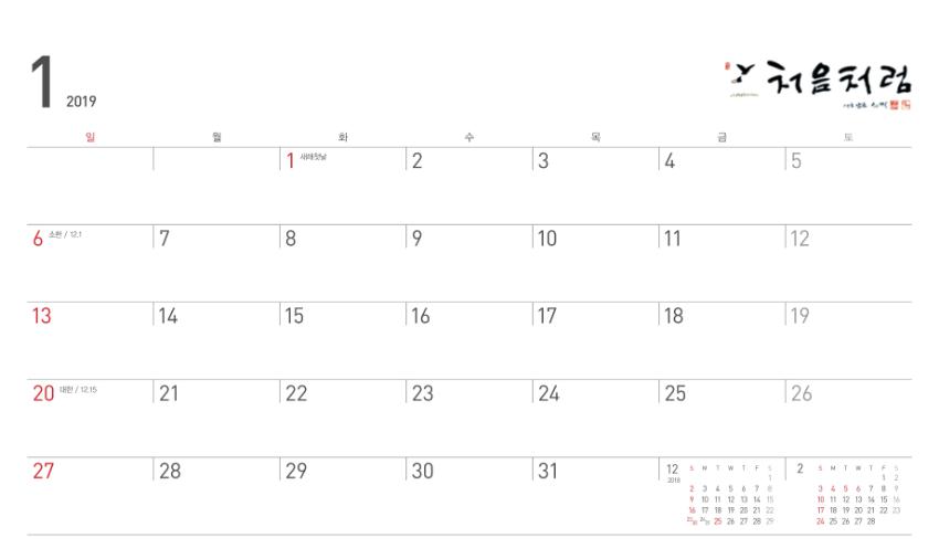 2019 신영복 서화달력 (날짜표시면 1월~12월)