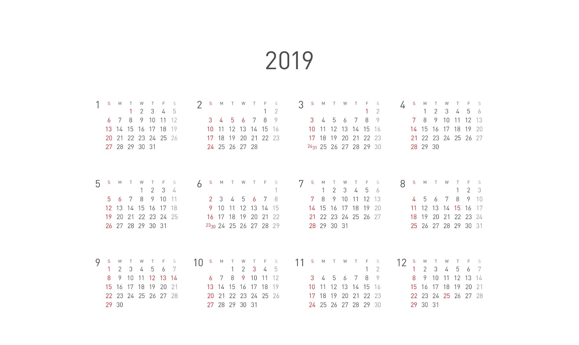 2019년 달력