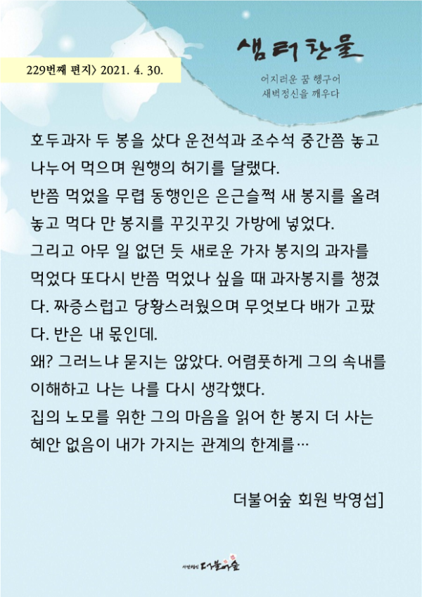 [소식지] 더불어숲 샘터찬물편지 229화