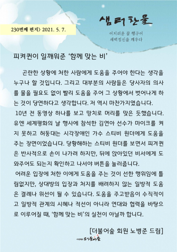 [소식지] 더불어숲 샘터찬물편지 230화