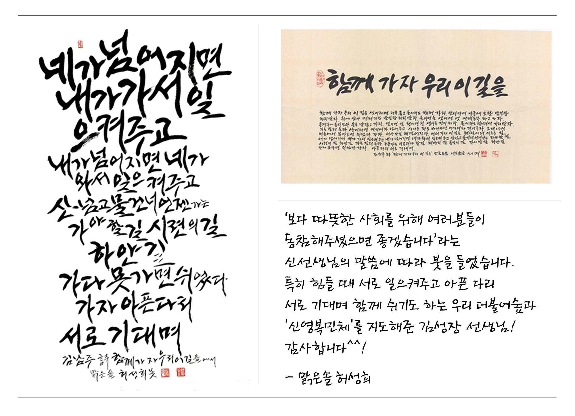 더불어숲과 '신영복민체'를 지도해준 김성장 선생님!!